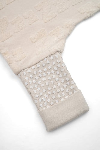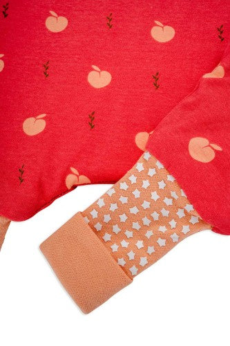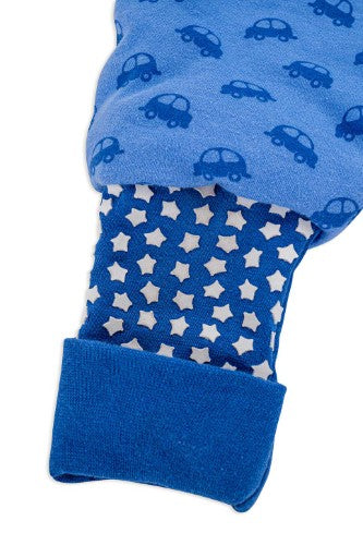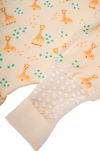 It is also made of certified organic cotton (80% GOTS certified organic cotton and 20% BCI cotton), with non-slip gaiters that close for the child to play and when he sleeps they become socks or leave the sole out.