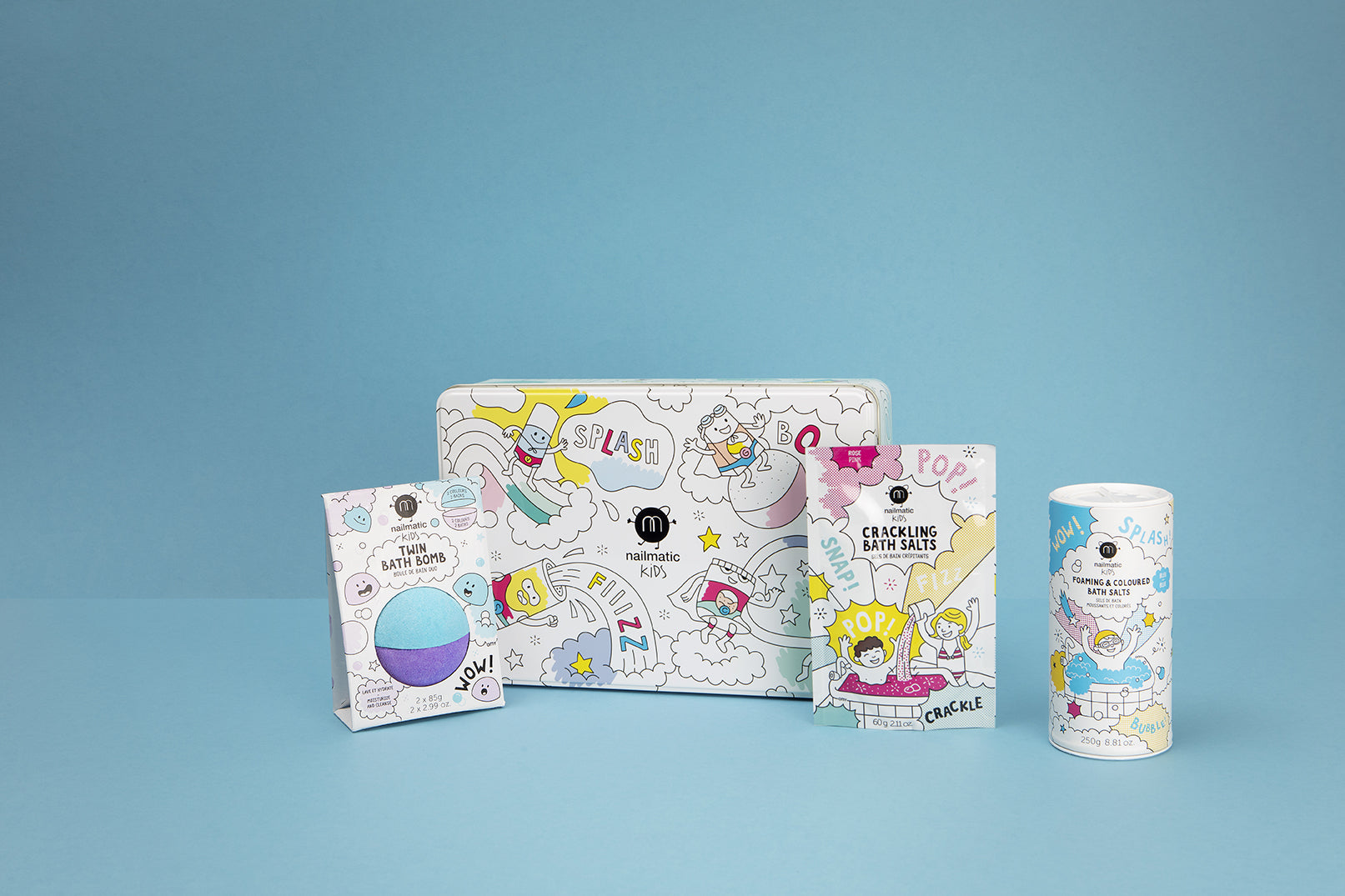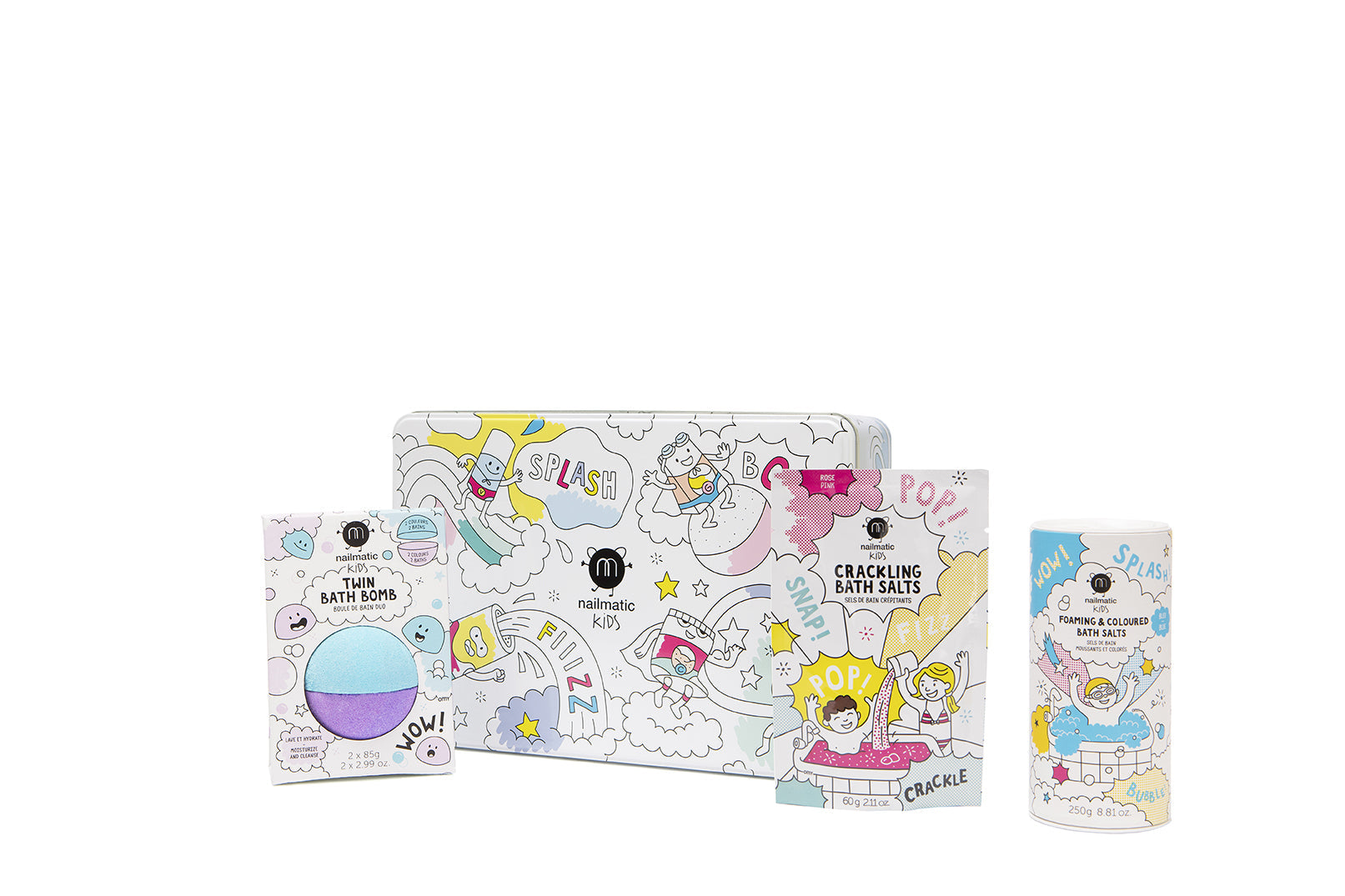 Bath Box concept is a bliss itself: 3 bestseller bath products 100% kids!?Gift-ready in its funny metal box.