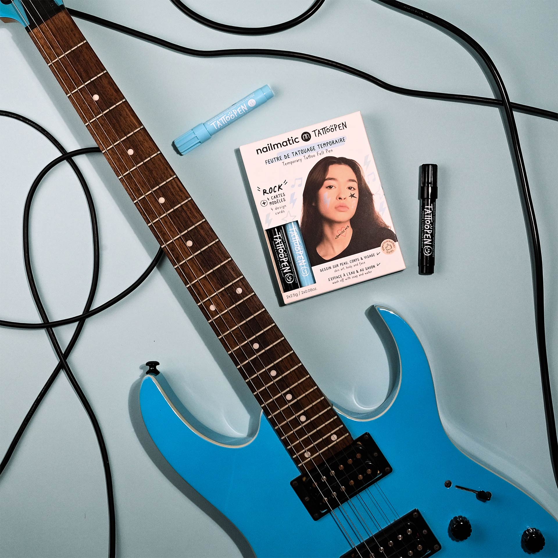 Rock Set A musical journey to the heart of rock with even more electric drawings. Rock temporary tattoo pen set.