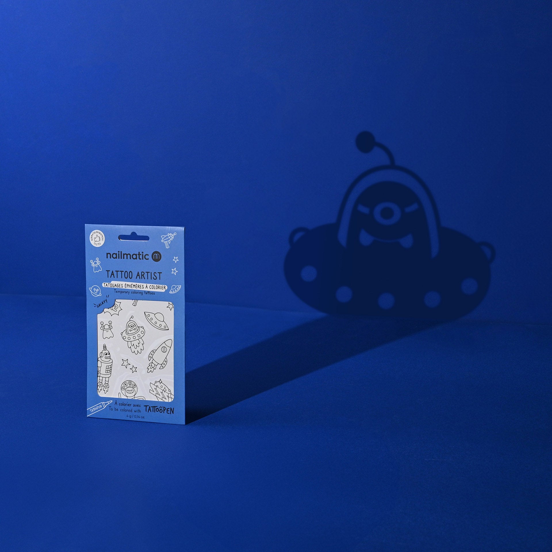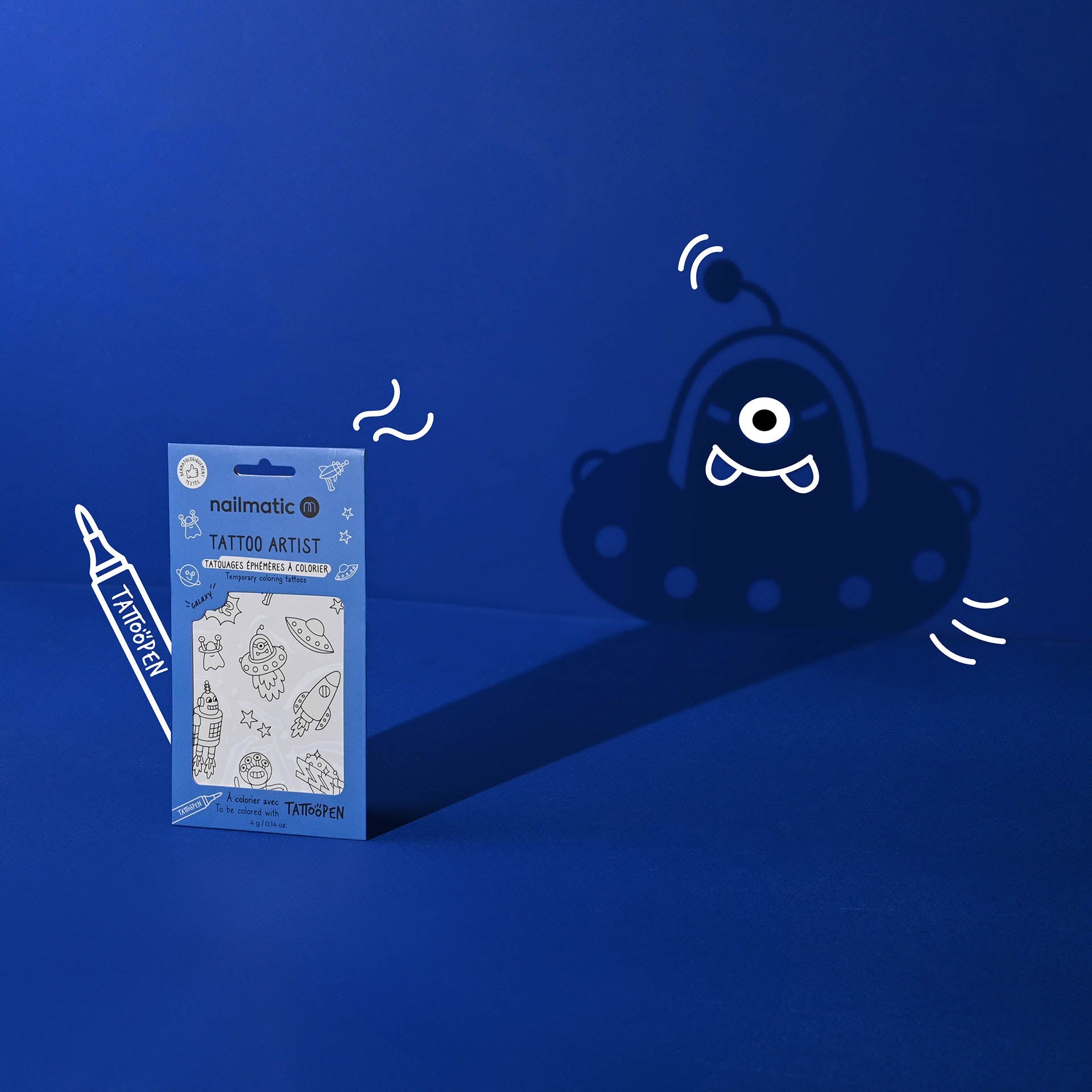 Kids love tattoos? Now they can customize them with our TATTOOPEN markers and choose their colours. - 12 space tattoos to cut out: aliens, flying saucer, planet, cosmonaut, stars… - A perfect gift for Star Wars lovers!
