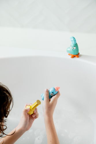 Contents of the Bath Modeling Dough Kit Two Pots of Bath & Shower Dough: Two vibrant colors to stimulate children's creativity. Pataploof's green and red bath & shower dough is soft and malleable, perfect for creating fun shapes before washing. Bath Toy with Pusher, Bloop, the Imaginary Friend: Included in the set, Bloop is an interactive modeling dough toy. Insert Pataploof's bath & shower dough into Bloop, then use the pusher to extrude the dough into fun shapes. Versatile Use of Bath & Shower Dough In the Bath or Shower: A 2-in-1 Modeling Dough Turn bath time into a creative game. Children can mold shapes before using them to wash. The bath & shower dough creates a light and gentle foam, cleansing the skin while providing a playful experience.