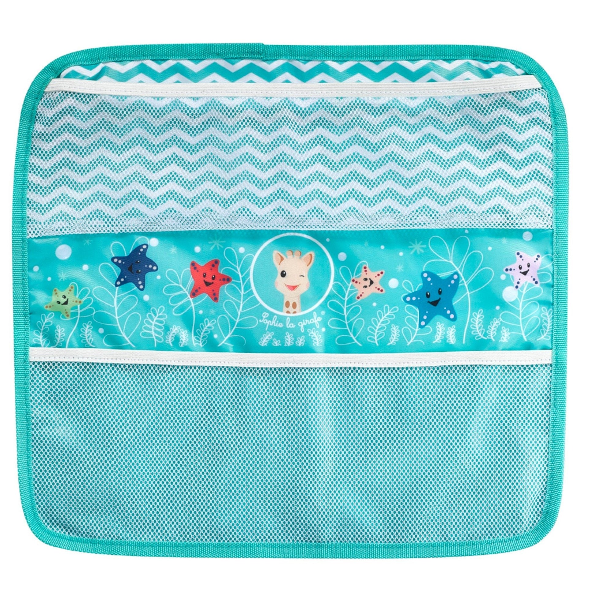 2.The Sophie la girafe bath storage unit means you can keep everything you need for baby's bath nearby. It attaches easily via its two suction cups. The two large mesh pockets let water to drip off and ensure that bath toys dry out fully.