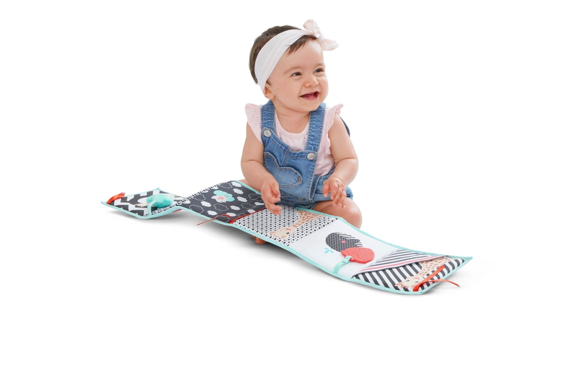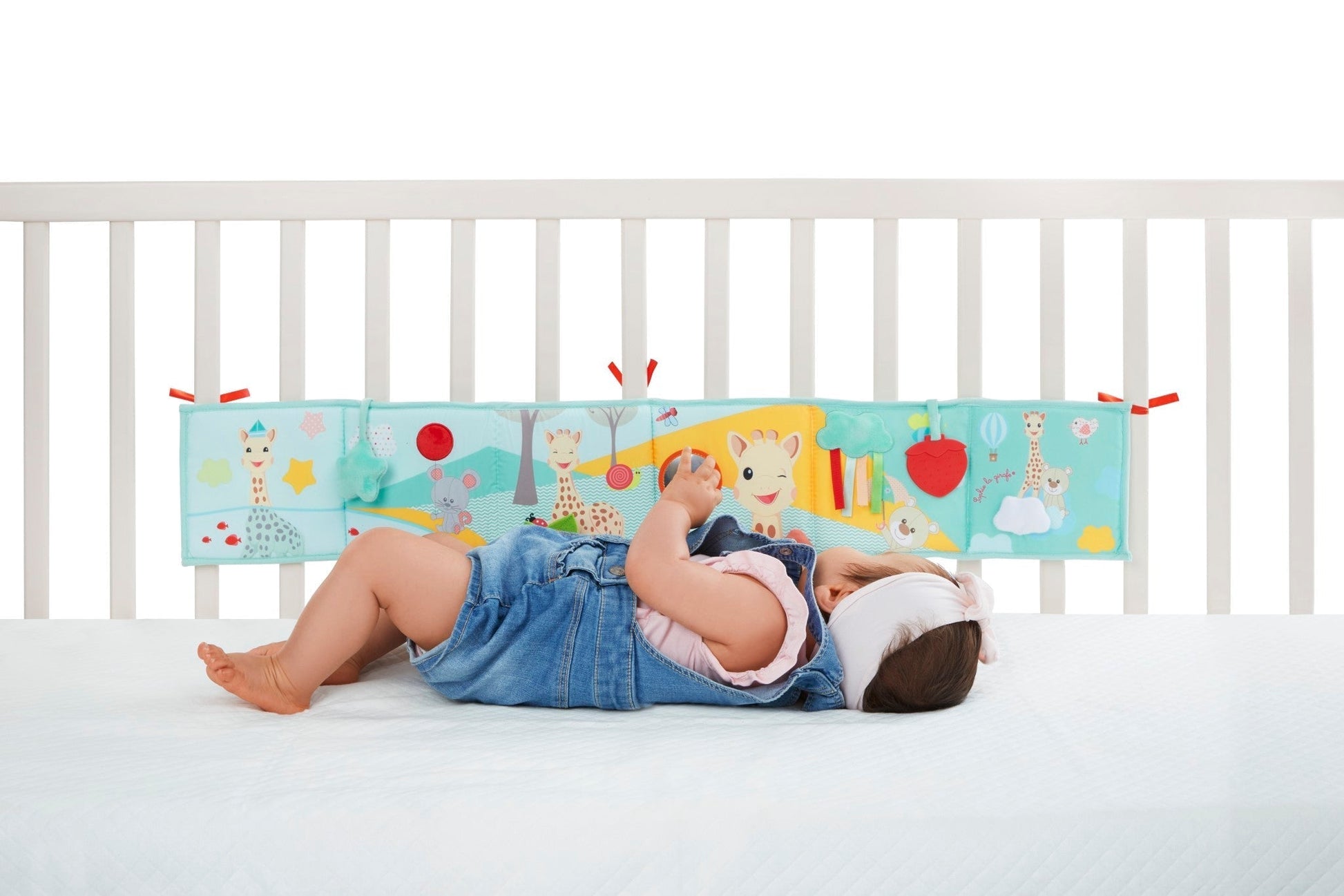 Smart, this book can be placed on the ground, hung on the bed or in the play yard thanks to 6 ties.